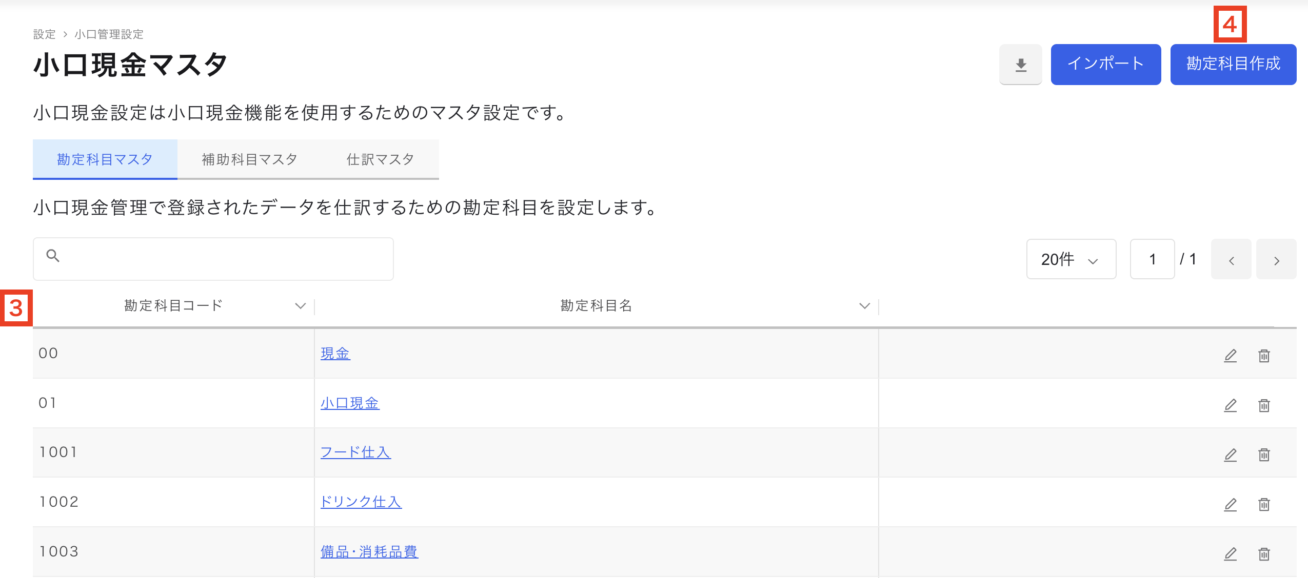 小口現金マスタ