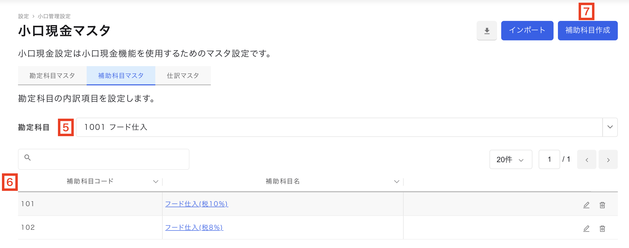補助科目コードはインポートする際に使用します。 - 補助科目名