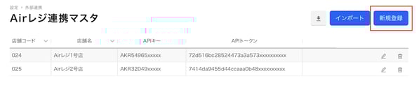 Airレジ連携画面が表示されるので、「新規登録」ボタンをクリックします。