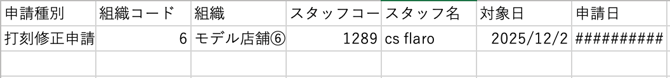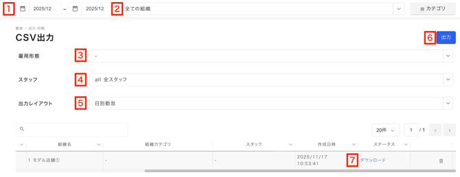 メニューバー勤怠>CSV出力