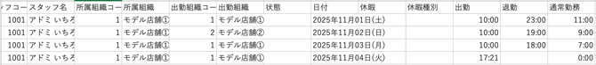 ○勤怠共有 シフト設定一覧