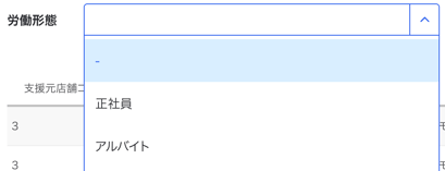スタッフがヘルプ勤務を行った支援先店舗名が表示されます。 - スタッフコード