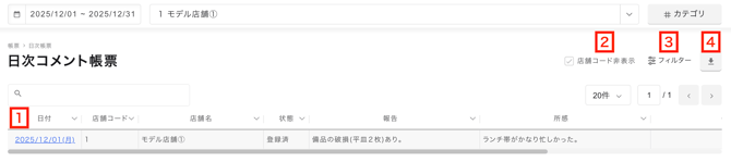 メニューバー帳票>日次コメント帳票