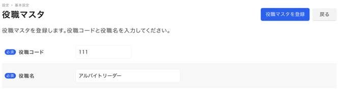 役職マスタでは、組織全体で共通の役職を管理することができます。