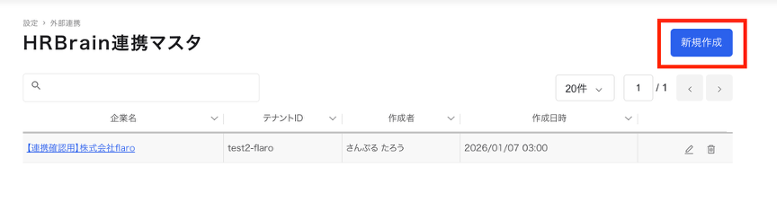 FLAROでHRBrain連携を利用するには、連携先のHRBrain企業情報を登録する必要があります。この記事では、連携企業の登録手順を説明します。
