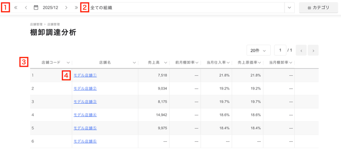 - メニューバー店舗管理>棚卸調達分析