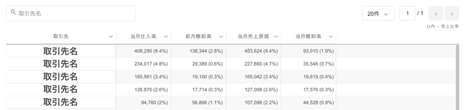 同一の取引先名が最大 3 件表示される場合があります。 - 当月仕入高