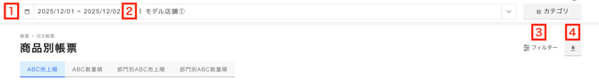 「商品別帳票」の内容を表示する日付を選択します。