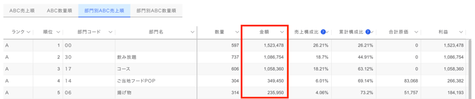 - 部門別ABC売上順