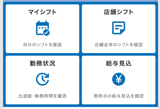 店舗速報へのアクセス権限があるスタッフには、自動的に管理者向けメニューが表示されます。メニューの切り替えは自動で行われるため、スタッフ側での設定は不要です。