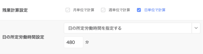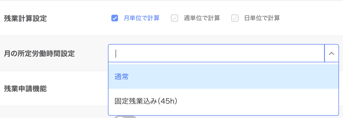残業計算設定:月単位、週単位、日単位のどれも設定しない
