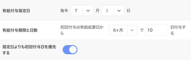 有給を自動付与する際の判断条件として使用されます。