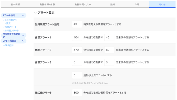 勤怠の丸め単位や残業の条件など給与計算に関わる重要な設定を行います。