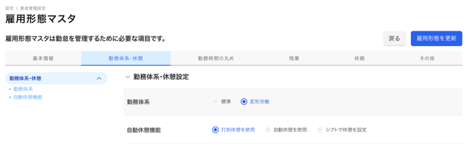 設定編集は勤怠管理設定の雇用形態マスタで追加編集してください。