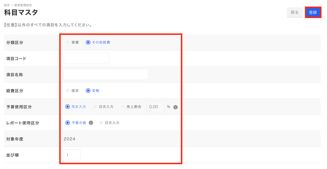 「予算編成」「レポート」で使用する項目を管理するための機能となります。