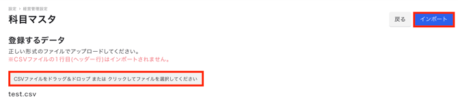 元にするCSVファイルは、CSVダウンロードから取得してください。