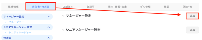 承認権限を与えるマネージャーの設定や、特賃日と加算額設定もこちらから行ってください。