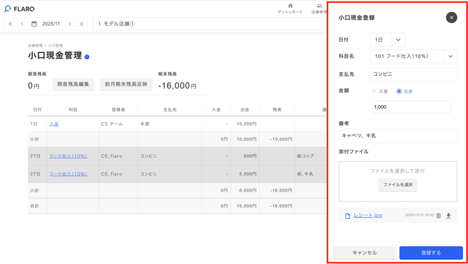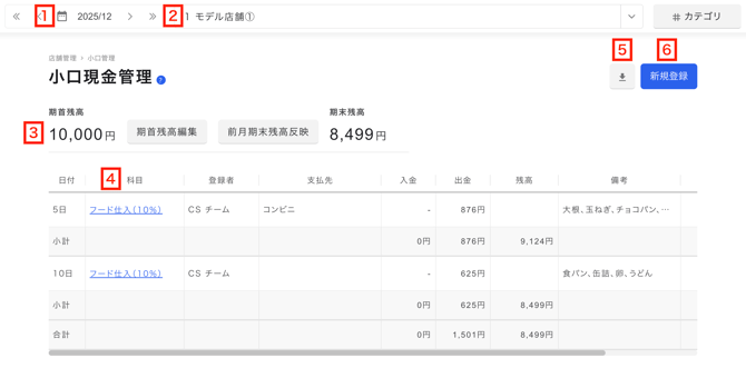 メニューバー店舗管理>小口現金管理