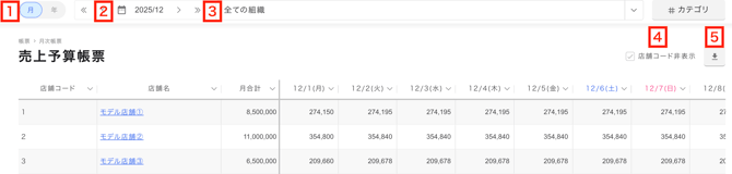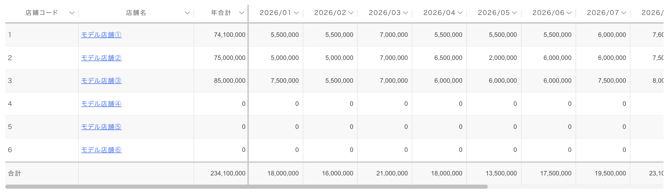 「予算編成」にて登録された予算を店舗ごとに集計することができます。