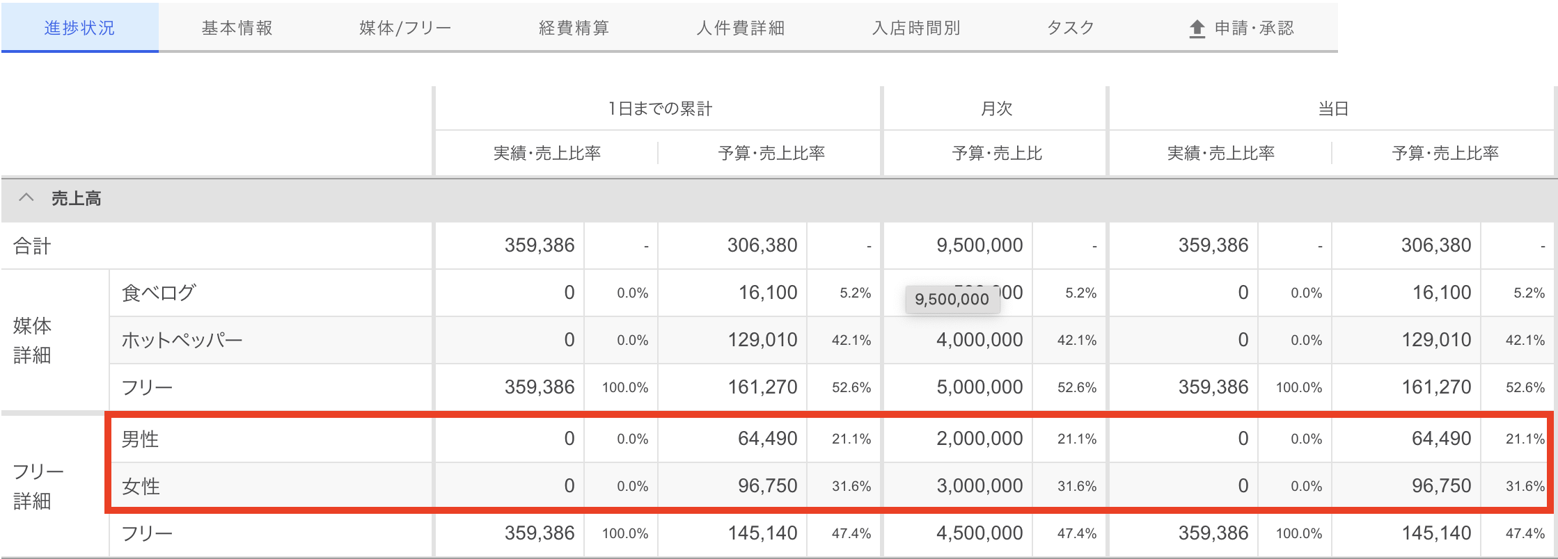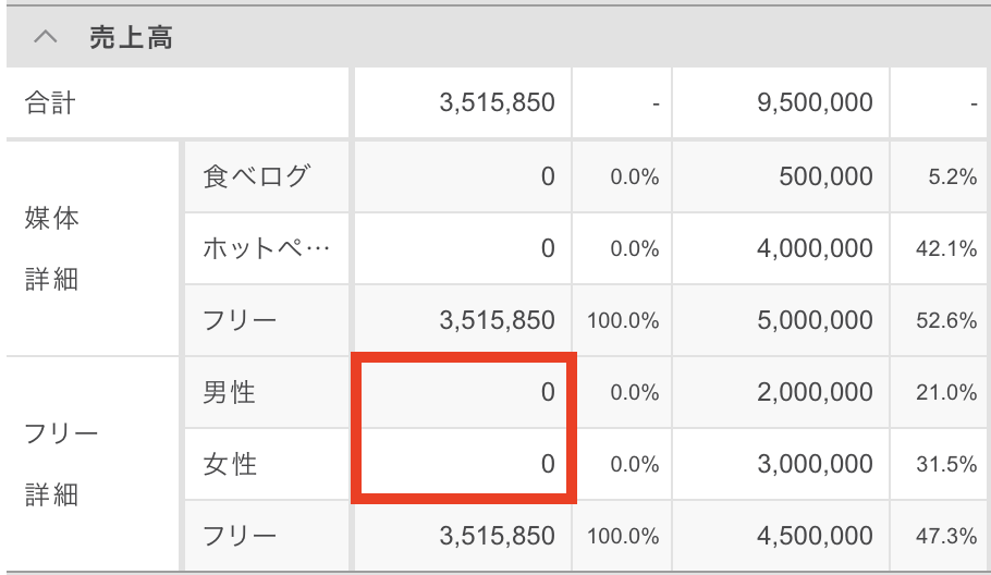ただし、「日報」の「媒体/フリー」画面にて、媒体ごとの売上を手入力することが可能です。