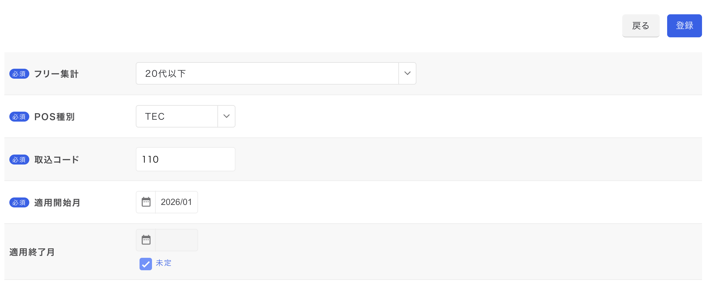 POS で登録されている項目に紐づく取込コードを登録します。