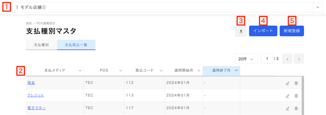 支払種別とレジ(POSデータ)からの取込設定を管理することができます。