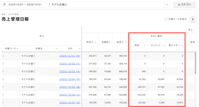 「日報」「売上管理日報」において、連携されたデータが反映されるようになります。 - POS