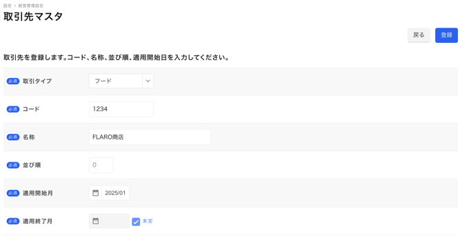 設定された月から取引先が登録可能になります。 - 適用終了月