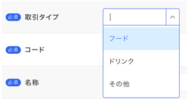 「レポート」のF:食材費のドリンクに計上される取引タイプです。 - その他