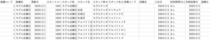 CSVをインポートすることで、スタッフ情報を一括で更新できます。