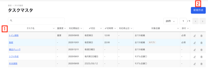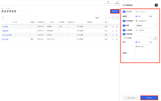 「タスク一覧」「店舗毎進捗」「タスク毎進捗」に表示するタスクを作成します。