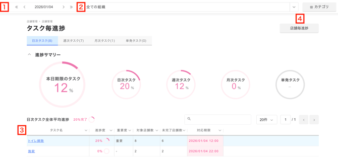 メニューバー店舗管理>タスク毎進捗◼️機能詳細説明
