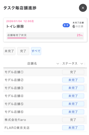 タスク名をクリックすることで、店舗ごとのタスクの進捗を確認できます。