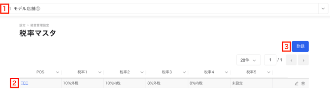 レジ(POS)から税率毎のデータ取得先を管理することができます。