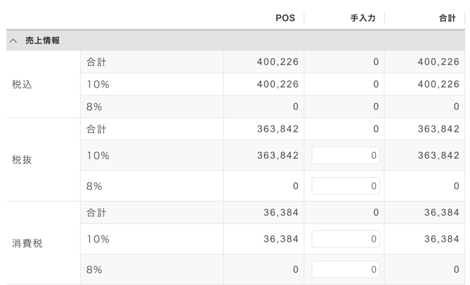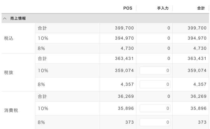 POS上で設定した税率ごとの売上が上から順番にデータで送信されてきます。