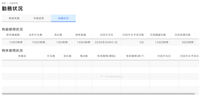 次回付与日までは、予定日数が表示されます。 - 次回消滅日数